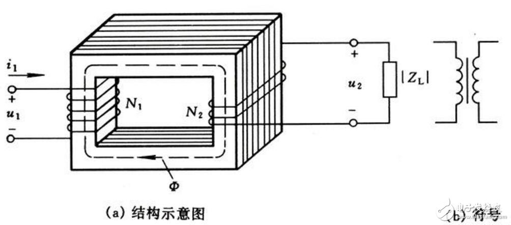 變壓器由鐵芯和繞組兩個(gè)根基部門組成,以下圖所示,是它的表示圖和標(biāo)記。