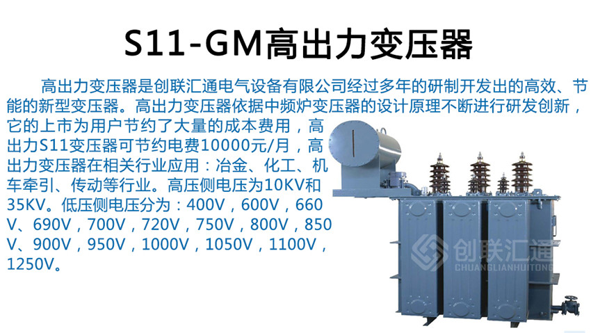 S11-GM高出力變壓器產品結構新穎,美觀大方,具有低噪音、低損耗、耐沖擊等優點。公司生產設備精良,檢測手段齊全,嚴格推行質量標準化管理。產品通過IS09001-2000質量管理體系認證及家變壓器質量監督檢驗中心各項試驗和檢側,并形成了精湛的制造工藝及獨有的產品特色。