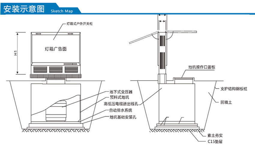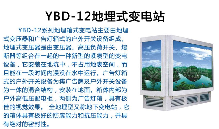 YBD-12系列地埋箱式變電站(簡稱地埋式箱變),是在充分研究和探討現代城市建設和管理的基礎上,新開發出的新一代箱式變。其主體部分或全部埋入地下,占地很少,甚至不占地,視覺效果非常好,有效解決了城市用地緊張和城市牛皮癬的矛盾,與周邊環境和諧統一,備受廣大專家和用戶的推崇。地埋箱式變電站是指該箱式變電站的成套裝置全部安裝于一個全密封的箱體內部并把整體設制于地平面以下,它和地面上箱式變電站,內部設備是相同的,同樣是由10KV輸入電壓經變壓器降為400/220V配電電壓再送配至使用負荷點,可用于環網配電系統,也可作為放射式電網終端供電的變電站。這種全地埋型又稱地下變電站,它的箱體具有極好的防腐能力和抗壓能力,并具有絕對的密封性。