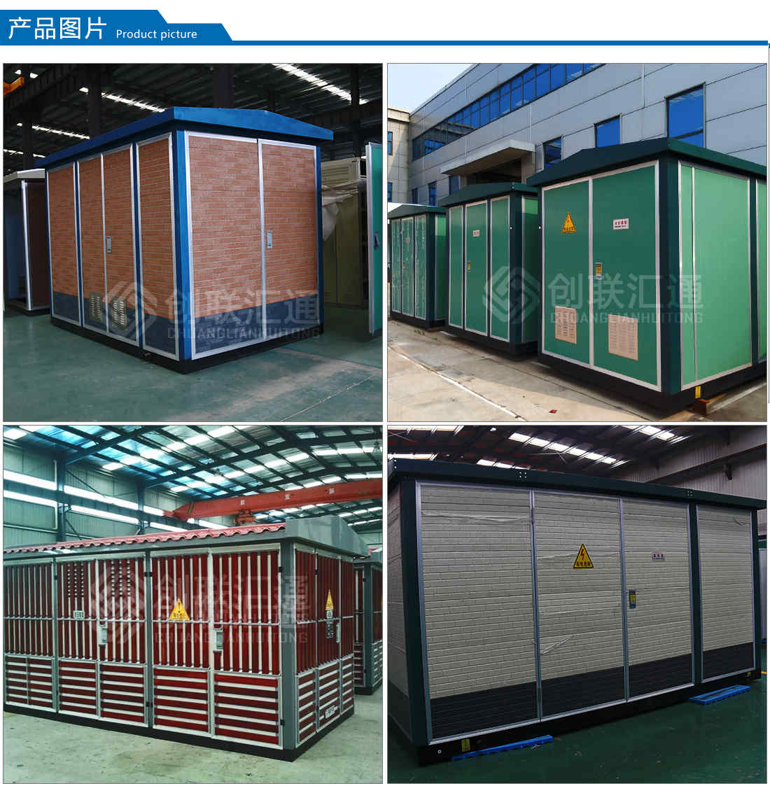 箱體部分采用目前內領先技術及工藝,外殼一般采用鍍鋁鋅鋼板,框架采用標準集裝箱材料及制作工藝,有良好的防腐性能,保證20年不銹蝕,內封板采用鋁合金扣板,夾層采用防火保溫材料,箱體內安裝空調及除濕裝置,設備運行不受自然氣候環境及外界污染影響,可保證在-40℃~+40℃的惡劣環境下正常運行。箱體內一次設備采用全封閉高壓開關柜(如:xgn型)、干式變壓器、干式互感器、真空斷路器,彈簧操作機構、旋轉隔離開關等內技術領先設備,產品無裸露帶電部分,為全封閉、全絕緣結構,完全能達到零觸電事故,全站可實現無油化運行,安全性高,二次采用微機綜合自動化系統,可實現無人值守。